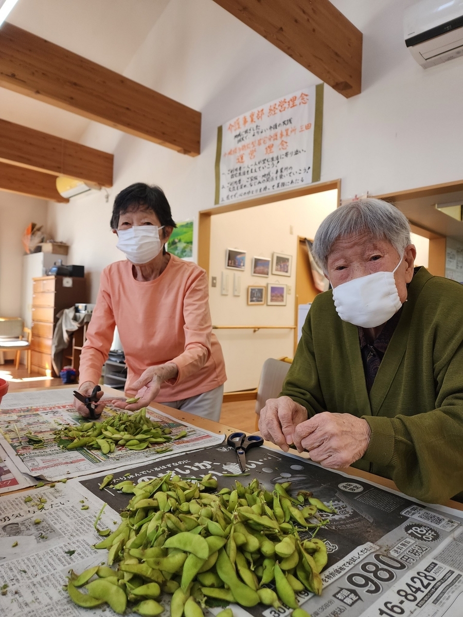 ご利用者の皆さんで手早く下処理をして下さいました。