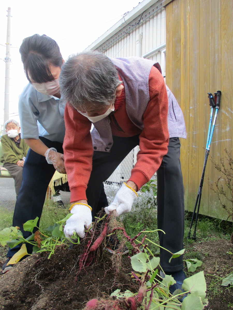 事業所で収穫したさつまいもやいただいた柿をどのようにしたらご利用者に喜んでいただけるか悩み、スイーツパラダイスを企画しました。