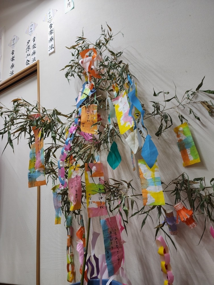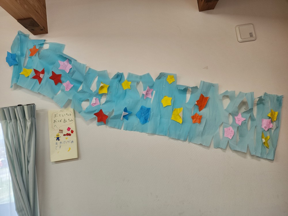 ご利用者からは児童達にクラフトテープで七夕飾りをプレゼントし、
